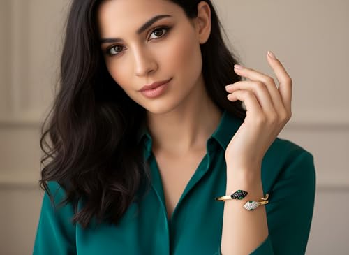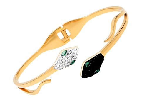 Generic - سوار بشكل ثعبان مزدوج مستوحى مرصع بالزركونيا، أنيق للنساء لأعياد الميلاد وحفلات الكريسماس وعطلات الصيف وأيام الموضة، مطلي بذهب عيار 18 قيراطا على الفولاذ المقاوم للصدأ