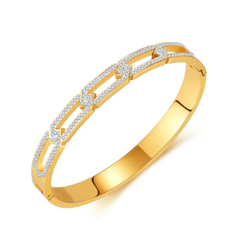 Generic - سوار بخطين من الزركونيا بتصميم متقاطع هدية للنساء في اعياد الميلاد والكريسماس والعطلات الصيفية ويوم الموضة - ستانلس ستيل مطلي بالذهب عيار 18 قيراط
