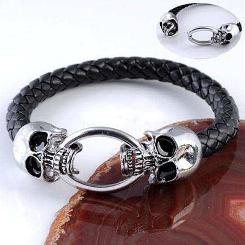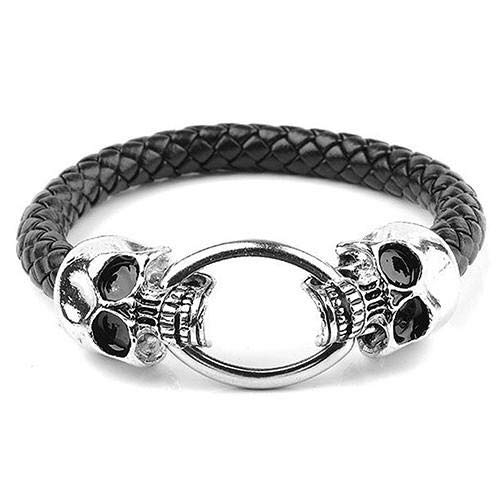 Other - سوار معصم بتصميم جمجمة - جلد, جلد, بدون أحجار، للرجال