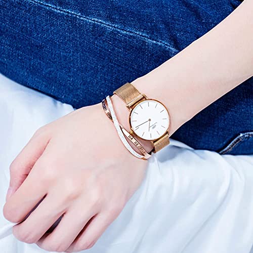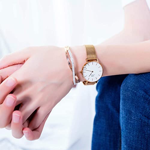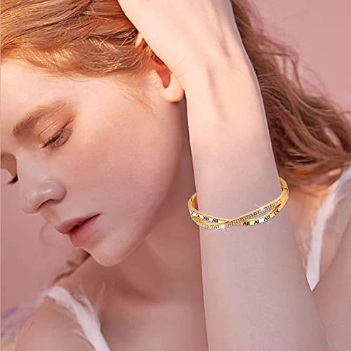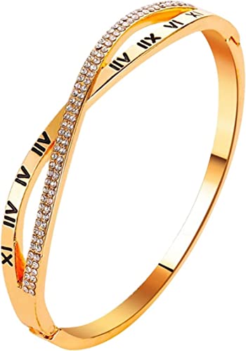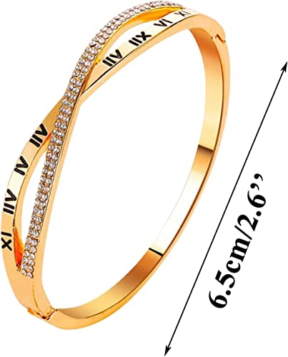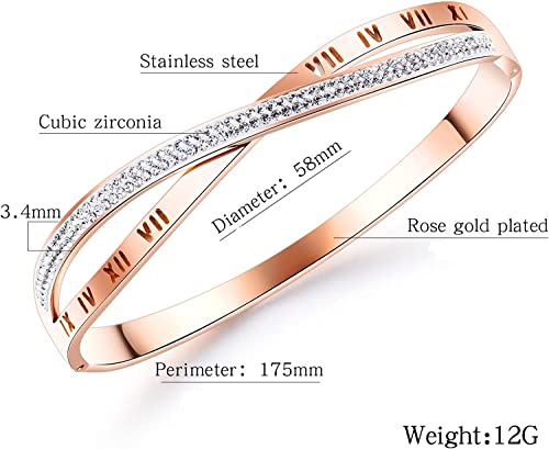 Generic - سوار زركون بارقام رومانية هدية للنساء والبنات من الستانلس ستيل مطلي بالذهب الوردي عيار 18 قيراط - مقاس واحد 6.5 ستانلس