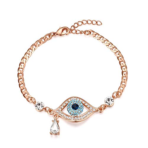 Other - سوار من احجار الراين مع تميمة عين حسد من حجر نمساوي - مطلي بالذهب الوردي 18 قيراط، للنساء