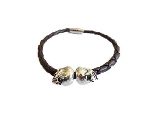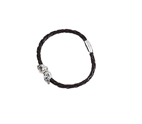 Other - اسوره من الجلد المضفر لون بنى غامق جدا بها 2 جمجمة لون فضى رقم الصنف 752 - 2، للجنسين