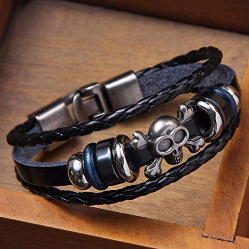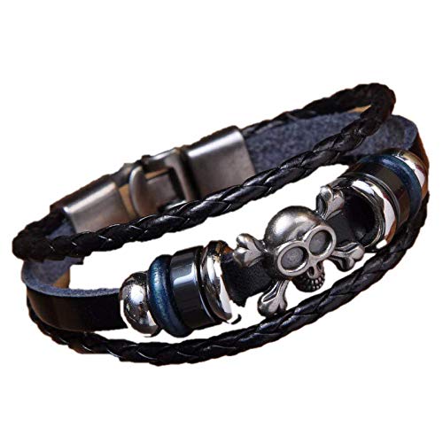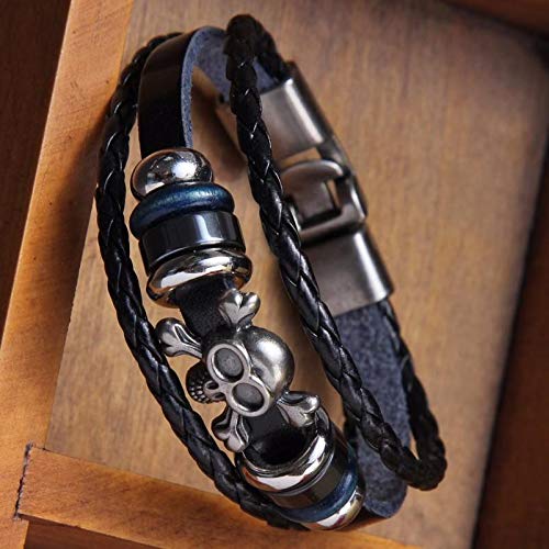 Other - اسوره من الجلد المضفر مع شكل جمجمة حلقات معدن لون اسود و كحلى رقم الصنف 765 - 1، للجنسين