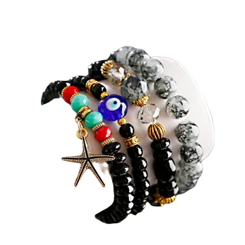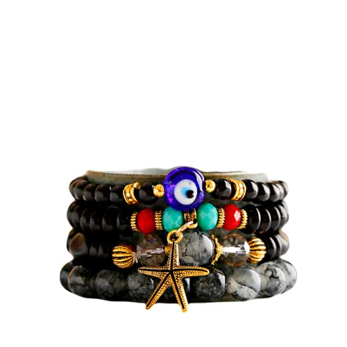 Generic - اساور يد باحجار طبيعية وخرزة زرقاء وشراشيب بطبقات متعددة اكسسوار للنساء