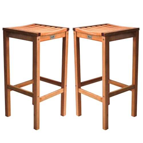 BrackenStyle - كرسي مرتفع ميلتون مربع الشكل بلمسة نهائية شفافة، ارتفاع خشبي للحديقة والفناء وتناول الطعام من براكين ستايل، قياسي تجاري (مجموعة 2 قطعة)