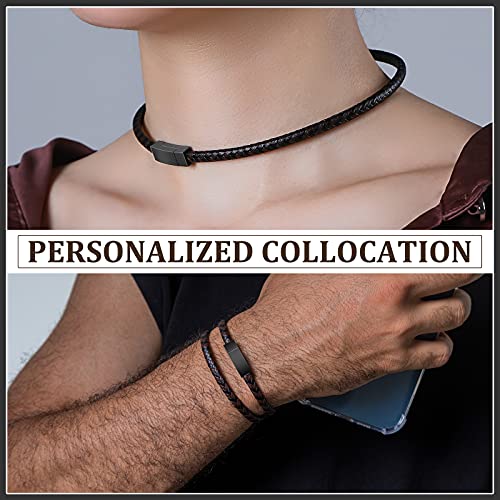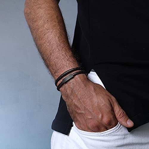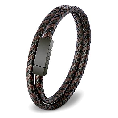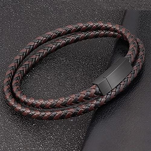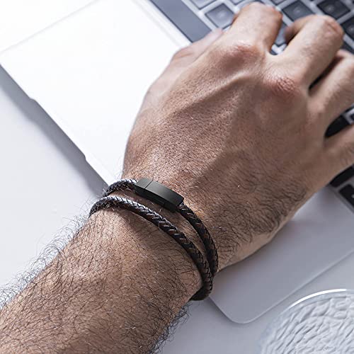 AOCYRENT - سوار مضفر من الجلد الاصلي ملتف بطبقة مزدوجة للرجال يتميز بتصميم شخصي مزود بابزيم مغناطيسي مصنوع التيتانيوم والستانلس ستيل 6.8inch جلد ان