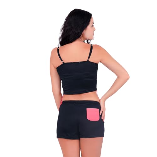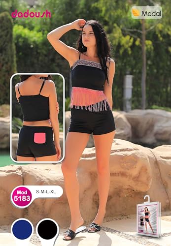 Dadoush - طقم بيجامة هوت شورت - بيجايم هوت شورت تيشرت مفرغة الأكتاف وشورت قصير بجيب للمظهر كاجوال أنيق - بيجامه نسائية من براند دعدوش