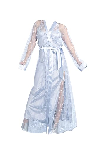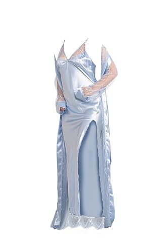 Shower - مجموعة لانجري ناعمة الملمس مكونة من قطعتين: رداء طويل من الدانتيل وقميص بدون أكمام، ومجموعة من قمصان النوم النسائية الدانتيل المطرزة، وفستان ساتان مثير من براند دعدوش.