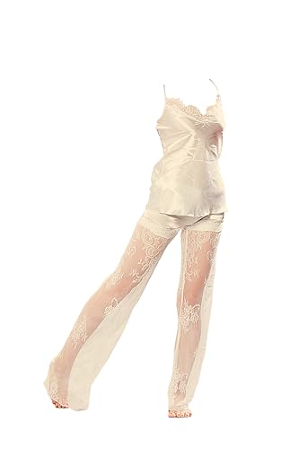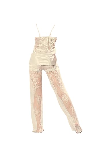 Dadoush - طقم بيجامة حريمي مصنوع من الساتان الملكي - بيجامة نسائية بحمالات رفيعة و بنطال دانتيل من براند دعدوش .