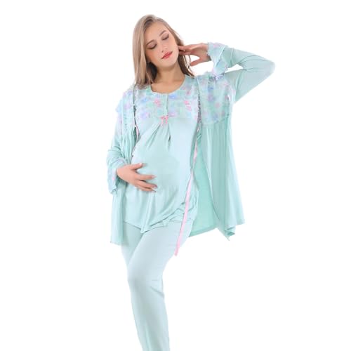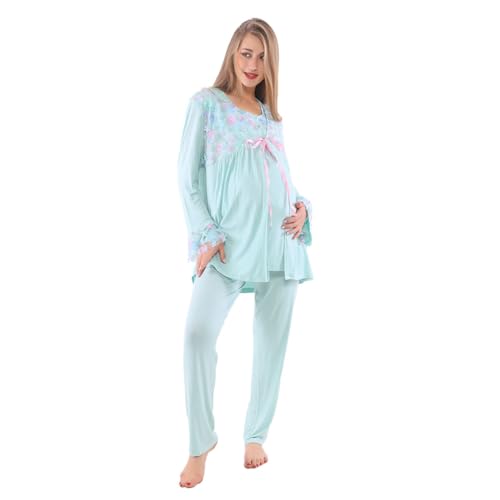 Dadoush - بيجامة كلاسيكية للنساء، طقم ملابس حمل قطنية ناعمة وخفيفة الوزن بأزرار أمامية وطباعة زهورعبوة من 3 قطع من براند دعدوش