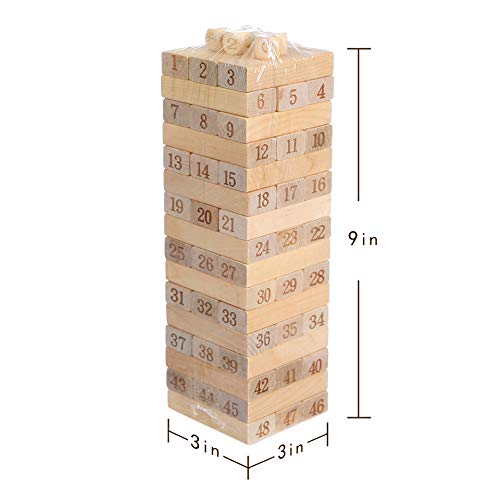 Brandon-super - مكعبات بناء خشبية من براندون سوبر لوتس، لعبة مكدسة، ارتفاع التكديس، برج مقلوب، لون الخشب الخام، (48 قطعة)