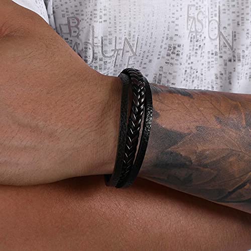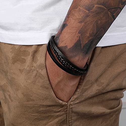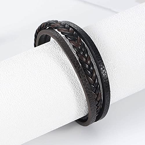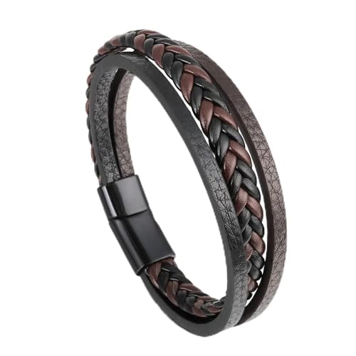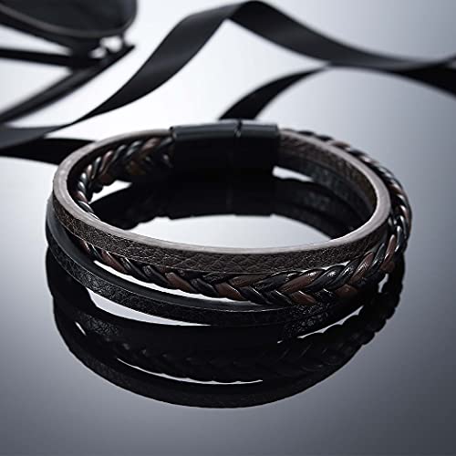 Branets - سوار من جلد بقر طبيعي متعدد الطبقات بمشبك اغلاق مغناطيسي برانتس مناسب للرجال والنساء لون بني واسود