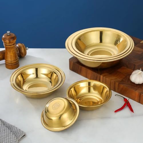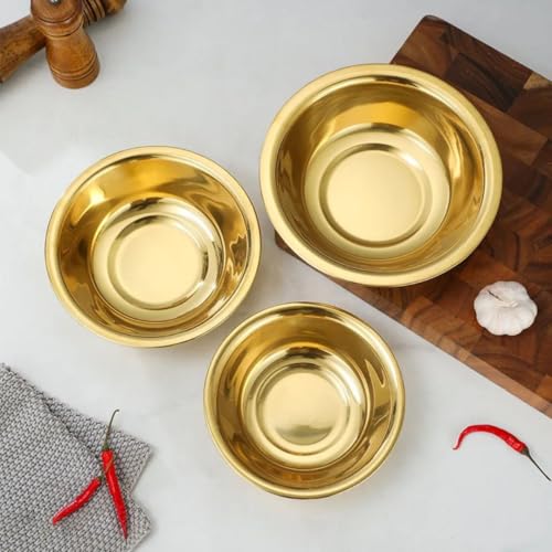 Generic - طقم اوعية تقديم نحاسية من 3 قطع، بلمسة نهائية ذهبية فاخرة، اوعية معدنية متينة للمطبخ، اعداد الطعام وتقديمه، اوعية خلط متعددة الاغراض