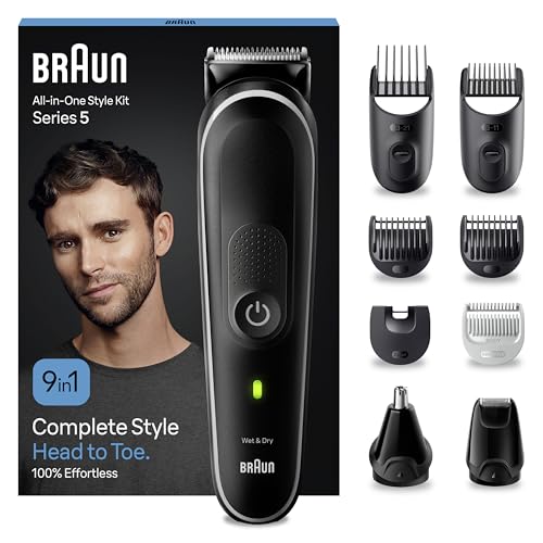 - مجموعة تصفيف الشعر 9 في 1 من براون للعناية بالجسم من الرأس إلى أصابع القدم وتشذيب اللحية وتشذيب الجسم وتشذيب الشعر ومقص الشعر في أداة واحدة - أدوات مختارة لتشذيب شعر اللحية والأذن والأنف وقص الشعر في المنزل