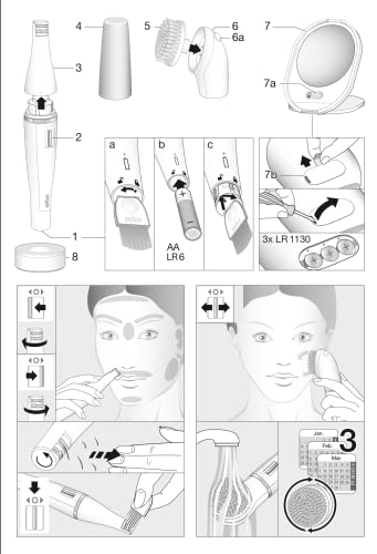 - تتضمن 4 فرش مختلفة لتغطية جميع احتياجاتك للعناية بالبشرة: فرشاة عادية، فرشاة إضافية، فرشاة تقشير، إسفنجة تجميل