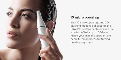 - ماكينة إزالة شعر الوجه: تصميم أنيق وصغير الحجم لإزالة الشعر بدقة. 10 فتحات دقيقة تلتقط حتى أصغر أنواع الشعر (0.02 ملم)