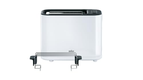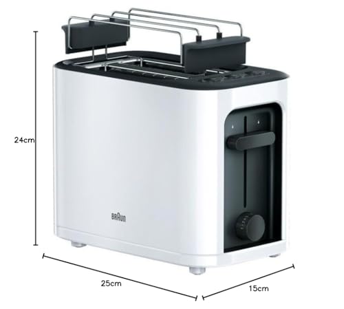 Braun - محمصة خبز بفتحة مزدوجة، صينية فتات قابلة للإزالة مع وظيفة الإحماء وإذابة الثلج و7 مستويات تحميص وأكسسوار كعكة منفصل من براون، أبيض HT3010WH