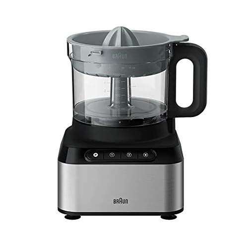 Braun - محضر طعام مضغوط FP3233SI بيور ايز من براون، عصارة حمضيات، ملعقة سباتولا، أداة عجين، مطحنة بلاستيكية متعددة، خلاط 1.2 لتر ووعاء 2.1 لتر، 800 وات، أسود