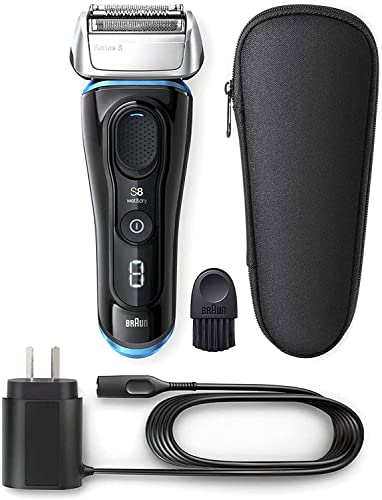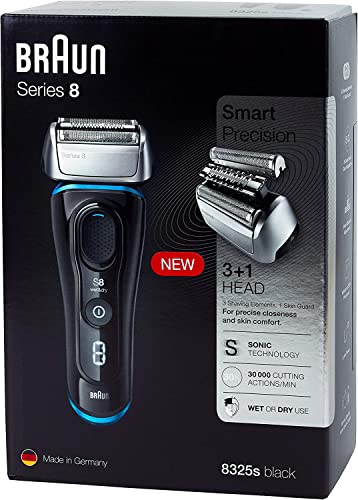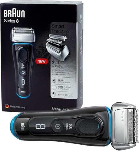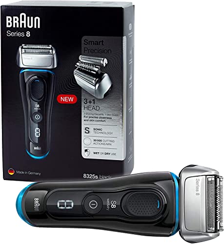 Braun - براون 8325s من الفئة 8 ماكينة الحلاقة الرطبة والجافة مع شنطة سفر، أسود/أزرق