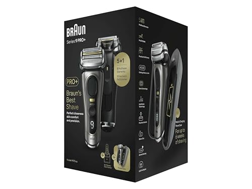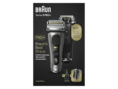 Braun - ماكينة حلاقة كهربائية 9575cc من السلسلة 9 برو بلس مع 5 عناصر حلاقة احترافية، ماكينة تشذيب الشعر الطويل وتحديد اللحية، مع علبة شحن باور كيس ووقت تشغيل 60 دقيقة، صنعت في ألمانيا من براون