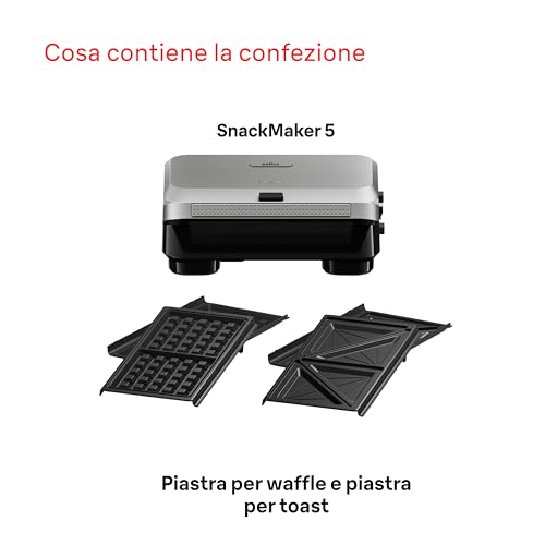 Braun - محضرة الشطائر من براون سناك ماستر 5، بتصميم عصري، مصنوعة من الداي كاست المعدني، باللون الفضي، بقوة 800 واط، مع سطح قابل للإزالة
