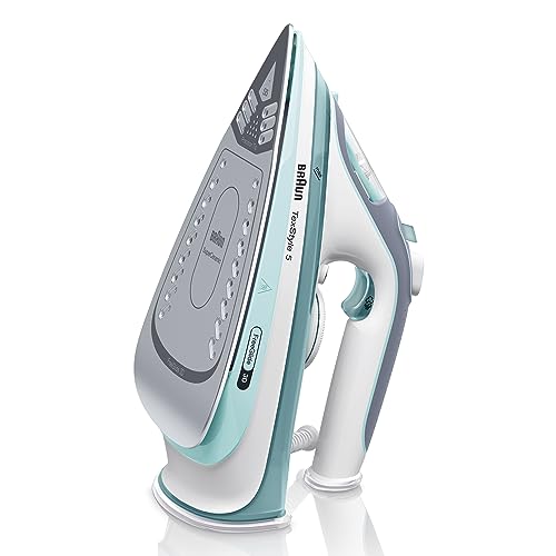 Braun - مكواة بخار 5 بتقنية فري جلايد ثلاثية الأبعاد تيكس ستايل من براون، 2700 وات، طلاء سيراميك فائق، طرف دقيق، خاصية منع التنقيط، سعة ماء 300 مل، SI 5017 أخضر