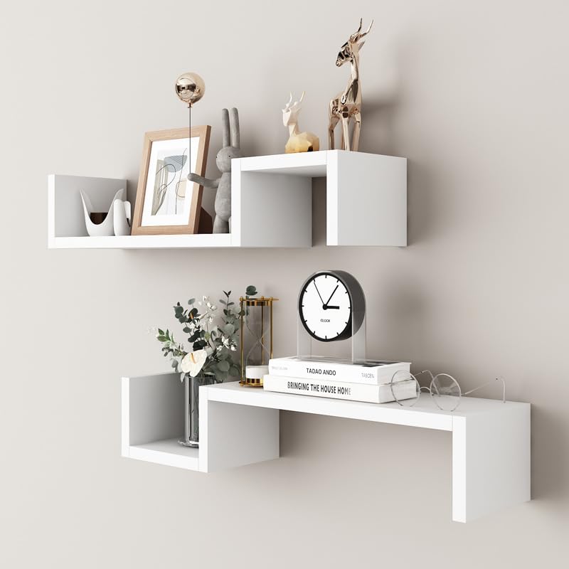 BRAVECOW - أرفف عائمة تثبت على الحائط، رف ديكور معلق على الحائط، ديكور بسيط، شبكة ابداعية بتركيب حر لغرفة المعيشة وغرفة النوم بجانب السرير والمطبخ من بريف كاو (أبيض)