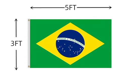 cuttencreat - علم البرازيل، علم من البوليستر 100D، علم البرازيل الوطني 3 × 5 قدم - اعلام برازيلية، اعلام ديكور خارجية، اعلام بالوان زاهية، جميع الاحوال الجوية، اعلام بخياطة مزدوجة، علم ديكور وطني، اعلام بوليستر