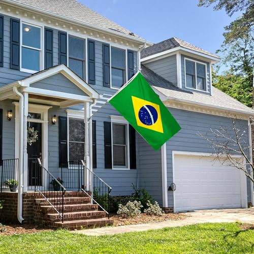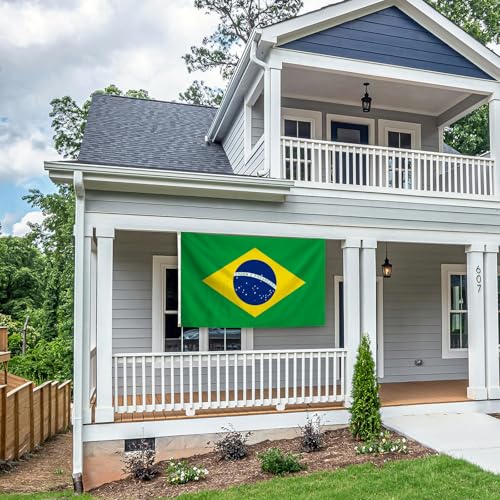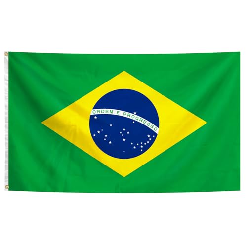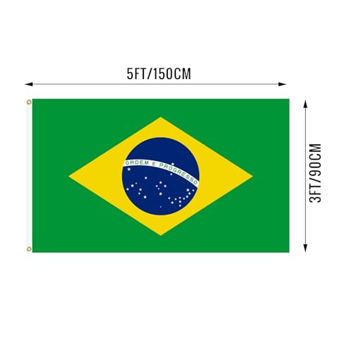 xepaxon - علم البرازيل 3 × 5 قدم، اعلام وطنية برازيلية بالوان زاهية مع حلقات نحاسية لتزيين الاماكن الداخلية والخارجية والحفلات والفناء والحديقة والشوارع