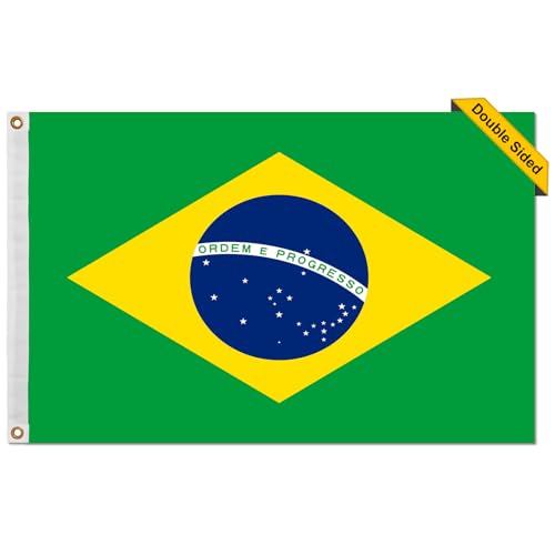 ZoYaone - علم البرازيل، علم البرازيل 90 سم × 1.50 م، علم البرازيل مخيط نايلون، متين للأماكن الخارجية بتصميم مزدوج الجوانب بحلقات نحاسية، علم البرازيل لجميع الأحوال الجوية للأماكن الخارجية