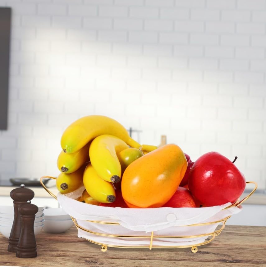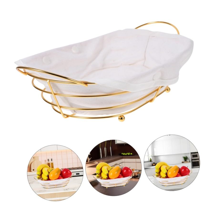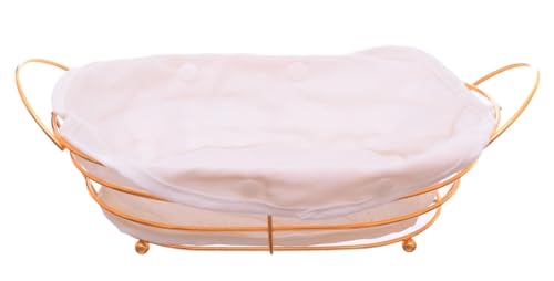 Generic - عياشة لتقديم الخبز من السلك بتصميم بيضاوي مع بطانة من القماش مناسبة للحفلات للفواكه والخضروات والخبز، ذهبي وأبيض (بيضاوية، أبيض)