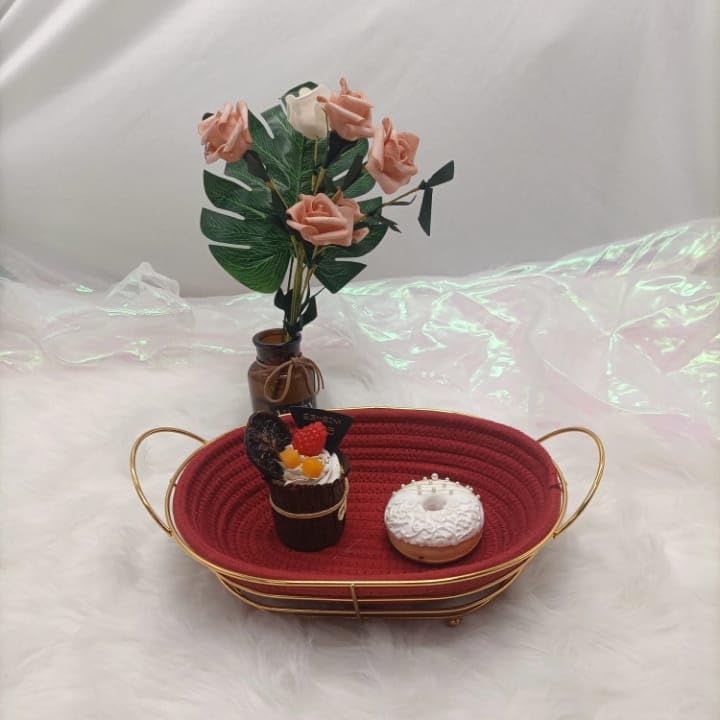 Generic - سلة خبز مع بطانة من قماش الكتان المعدني، تخزين للطاولة للخبز والرغيف والمافن والكعك والمزيد، سلة طعام فورية للمطبخ والطعام والاستخدام المنزلي، حل تخزين انيق (احمر)