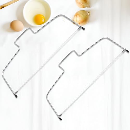 Generic - أداة تقطيع الخبز - أداة تقطيع الكيك بسلك من الفولاذ المقاوم للصدأ، جهاز مطبخ قابل للتعديل لشرائح متساوية ملولبة، مثالية لتزيين الكيك، دقة الخبز وقطع الملمس الناعم (قطعتان)
