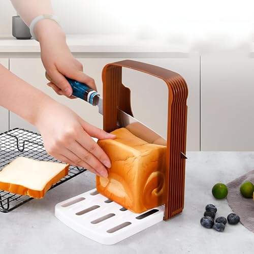 Generic - قطاعة الخبز - قطاعة رغيف الخبز القابلة للتعديل والطي للخبز محلي الصنع والخبز المحمص والخبز والسندويشات - مطبخ بلاستيك بني أساسي بسماكة شريحة دقيقة