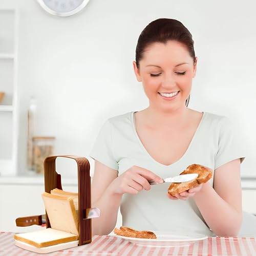 Generic - قطاعة شرائح خبز قابلة للتعديل والطي، أداة مطبخ عملية لتقطيع الخبز المصنوع في المنزل والتوست وأرغفة الساندويتش والبيجل بشكل متساوي مع 4 خيارات سماكة لقطع دقيق وسهل الاستخدام
