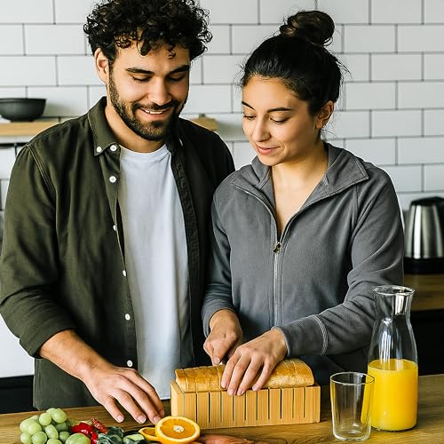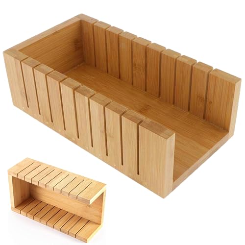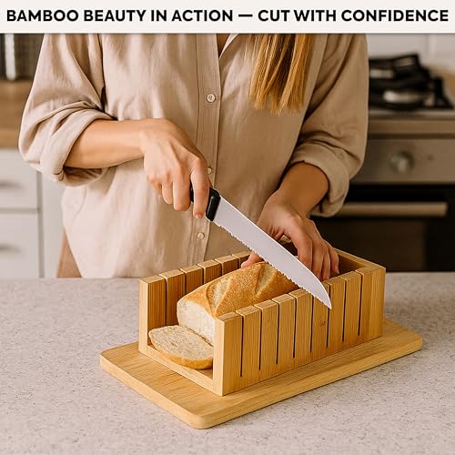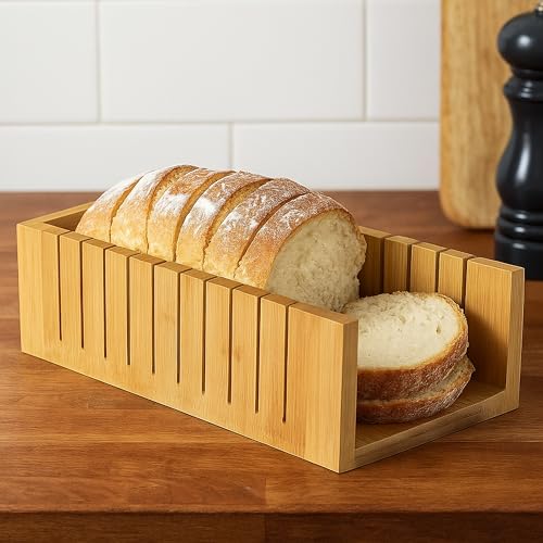 DIDARA - قطاعة خبز للخبز المنزلي - دليل تقطيع خشبي بسمك قابل للتعديل مع صينية فتات الخبز
