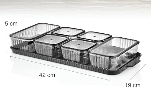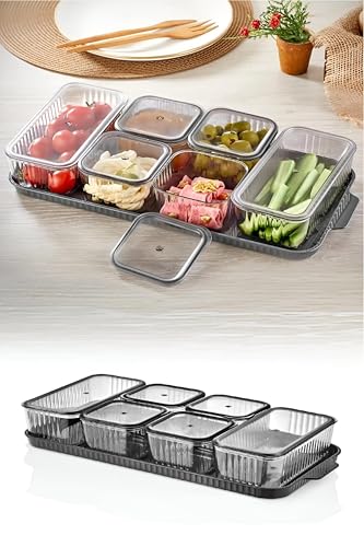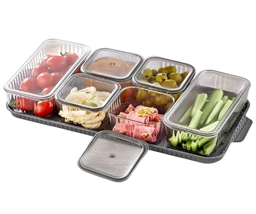 Generic - صينية تقديم الإفطار على الطراز التركي مع حاويات اكريليك نقية عالية الجودة، صينية مثالية للتخزين في الثلاجة، تتضمن 4 بولات صغيرة (300 مل)، و2 وعاء مستطيل (600 مل)