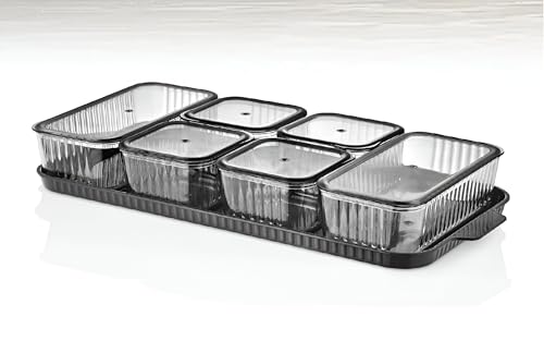- تتميز هذه المجموعة متعددة الاستخدامات بمزيج من مساحات التخزين المربعة والمستطيلة، مما يوفر مساحة تخزين منظمة لمجموعة متنوعة من الوجبات الخفيفة ومكونات الإفطار. يضمن تضمين غطاء وصينية من الأكريليك تقديم وحماية مريحة للمحتويات، مما يجعلها مثالية للاستخدام اليومي والمناسبات الخاصة.