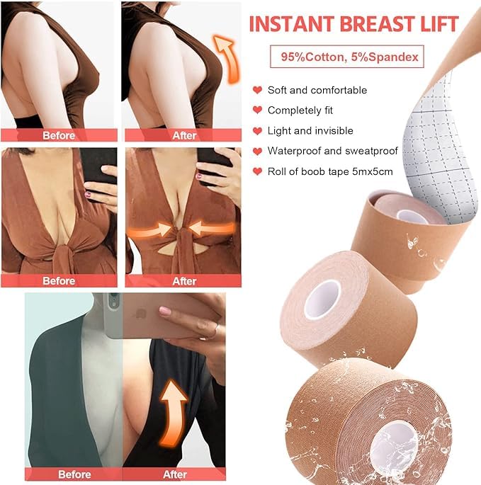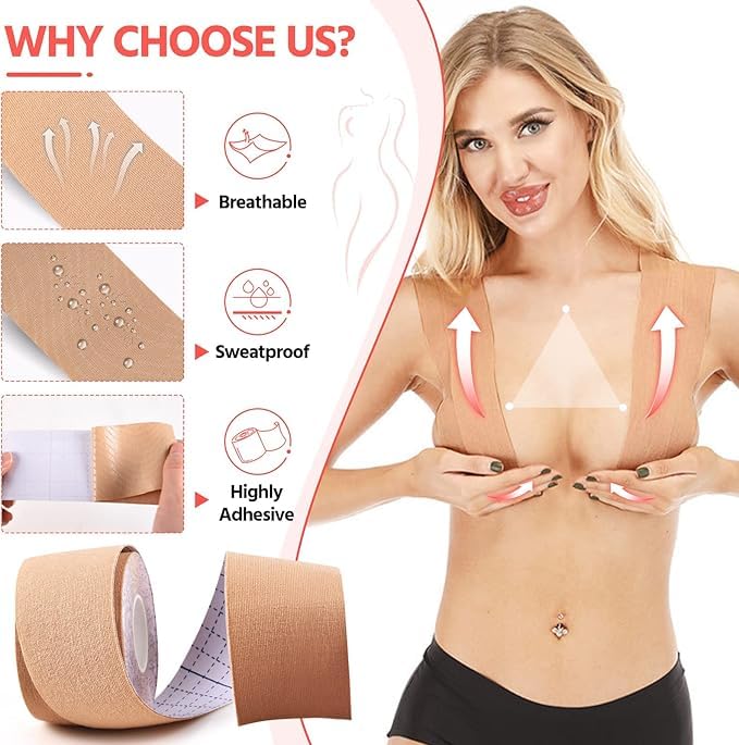 Generic - شريط رفع الصدر للنساء – بديل غير مرئي لحمالة الصدر، لاصق آمن ومريح لجميع المقاسات من A إلى DD، بطول 5 أمتار، خالٍ من الأسلاك لتثبيت مثالي ودعم طبيعي