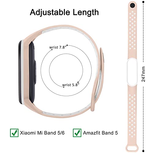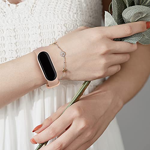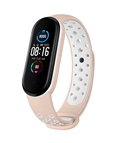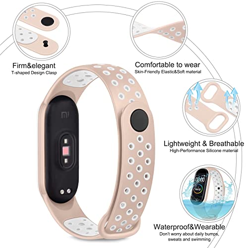 Generic - سوار ساعة بديل بمسامات للتهوية مصنوع من السيليكون لسوار M3 وM4 شاومي مي باند 3/4 بينك ساند وابيض أسود للكبار الجنسين
