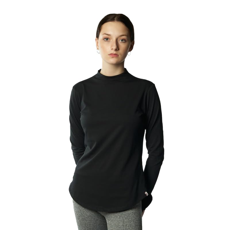Breathe - تيشرت سادة بأكمام طويلة وقصة قصيرة بتصميم مزدوج الطبقات من قماش البامبو والقطن للنساء من بريث