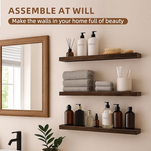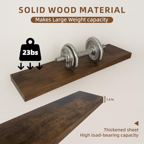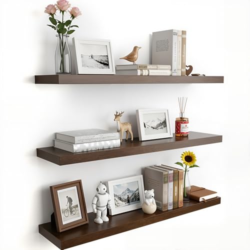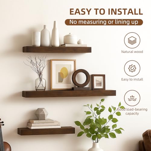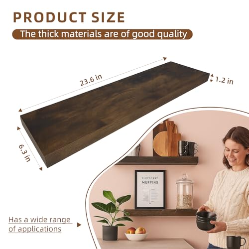 Breathfly - ارفف عائمة للجدار بطول 23.6 انش من بريثفلاي، مجموعة من 3 ارفف خشبية ريفية تثبت على الحائط، رف عرض مع ارفف عميقة ثقيلة غير مرئية لديكور المنزل والتخزين لغرفة المعيشة والمطبخ