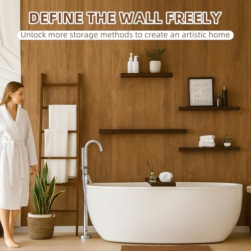 - 【تصميم عصري وسهل التركيب】مصنوعة من خشب ليفي متوسط الكثافة مع لمسة نهائية من الخشب الحبيبي، هذه الرفوف القابلة للتقشير واللصق للجدران لا تبدو رائعة فحسب، بل إنها أيضًا سهلة التركيب. مع أجزاء صلبة متينة ودعامات معدنية، يمكنها دعم ما يصل إلى 33 باوند، مما يضمن عرض أغراضك بأمان وأناقة.