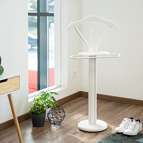 - لماذا حامل خادم؟ - لأنه جاهز دائمًا للاستخدام. لست مضطرًا للبحث عن الشماعات أثناء التغيير ويمكن تهوية ملابسك على خادمك الصامت. كما أنه مثالي للحفاظ على الملابس جاهزة للصباح التالي. على الرف المدمج لديك مساحة لمحتويات جيوب البنطال أو الهاتف المحمول أو الساعة. حامل الخادم الخاص بك مناسب لغرفة النوم أو غرفة الملابس. ولكنها مفيدة جدًا أيضًا في الحمام أو المكتب
