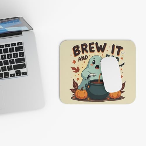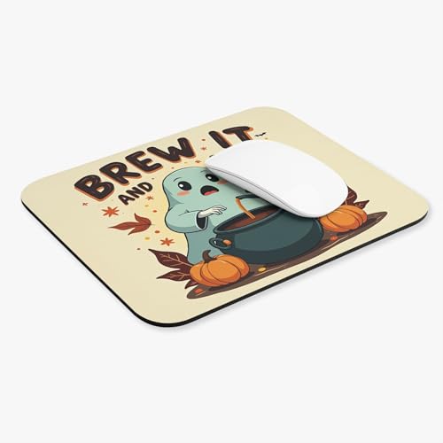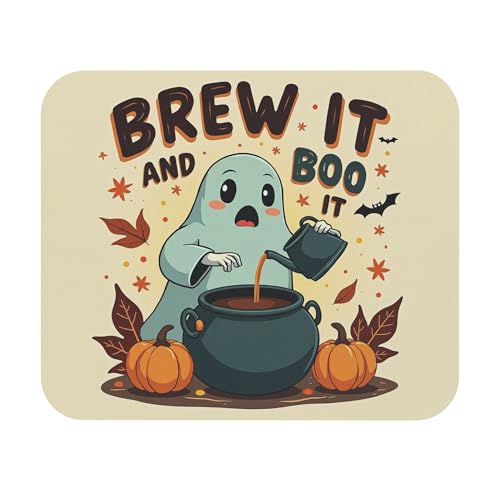 Generic - قاعدة ماوس بتصميم شبح لطيف وعبارة "Brew It and Boo It" بسطح ناعم وقاعدة غير قابلة للانزلاق مناسبة للهالوين لأجهزة الكمبيوتر واللاب توب والمكتب