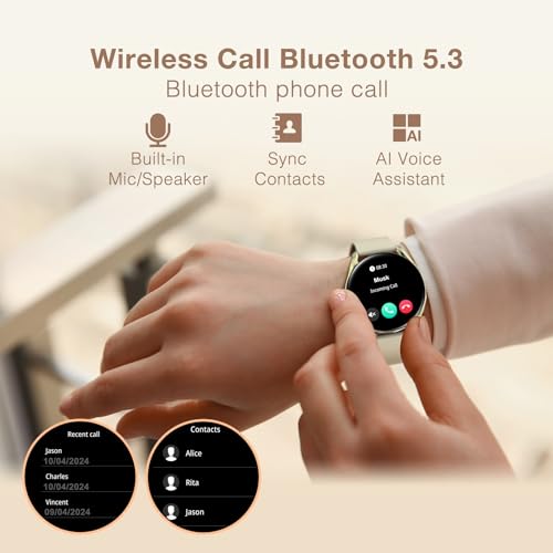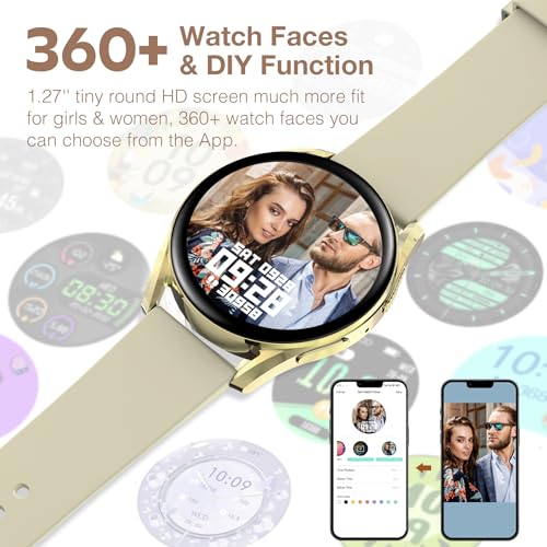 BRIBEJAT - ساعة ذكية بشاشة لمس 1.27 بوصة للنساء (إجراء مكالمات/الرد) SpO2 متتبع لياقة بدنية عداد خطوات معدل نبضات القلب/تشبع الاكسجين/مراقب النوم متوافقة مع موبايلات أندرويد من بريبجات