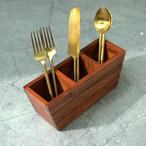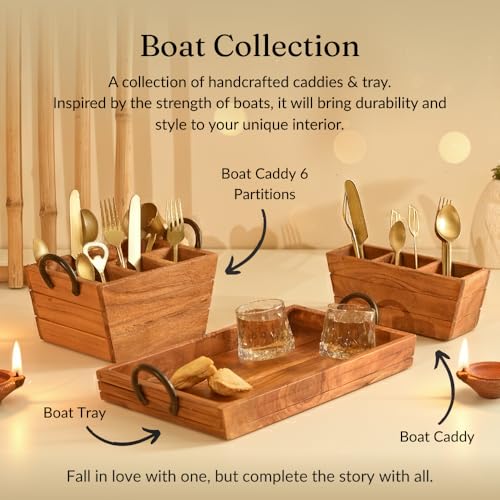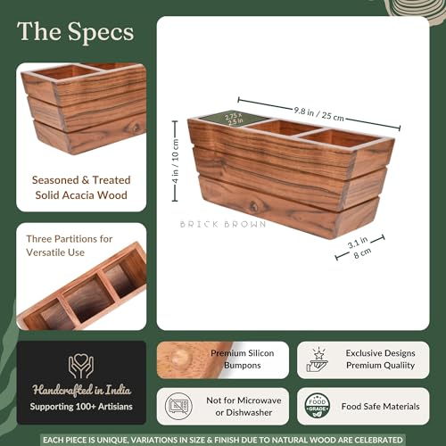 Brick Brown - حامل أدوات مائدة خشبي فاخر على شكل قارب من بريك براون®، حامل ملاعق لطاولة الطعام (مقاس سمول S)
