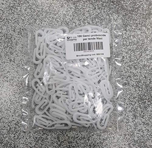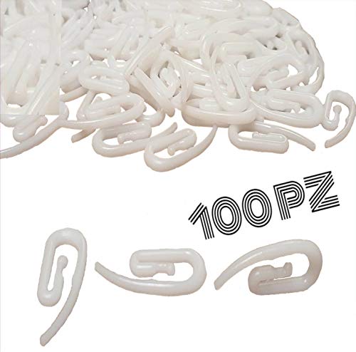 BricoShopping - خطافات ستارة من بريكو شوبينج، خطافات بتصميم منقار البطة لتعليق وتثبيت الستائر بتصميم منزلق مع قضيب سكة للتعليق، خطافات بشكل خرطوم الفيل بلون ابيض من البلاستيك- 100 قطعة (ماكسي)