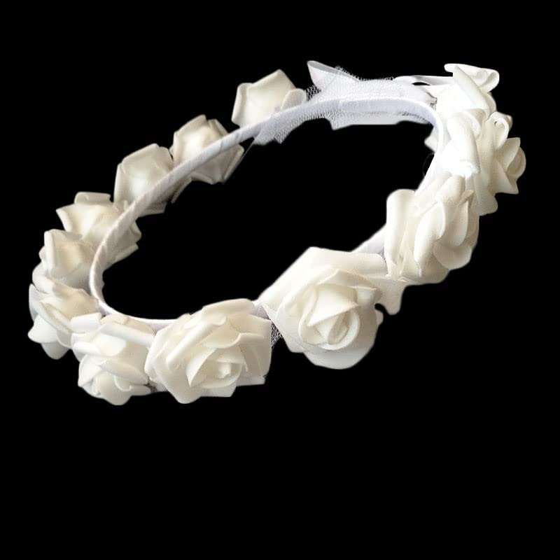 Generic - تاج زهور للزفاف اكليل من الزهور باللون الابيض زينة العروسة لحفلة الزفاف وليلة الزفاف (بدون طرحة)