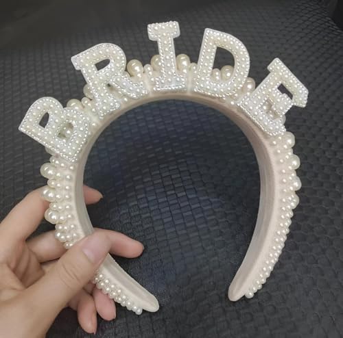Generic - طوق رأس مبطن قطيفة مزين بلؤلؤ صناعي وحروف كلمة "BRIDE"، مناسب لحفلات ما قبل الزفاف والخطوبة واكسسوارات يوم الزفاف